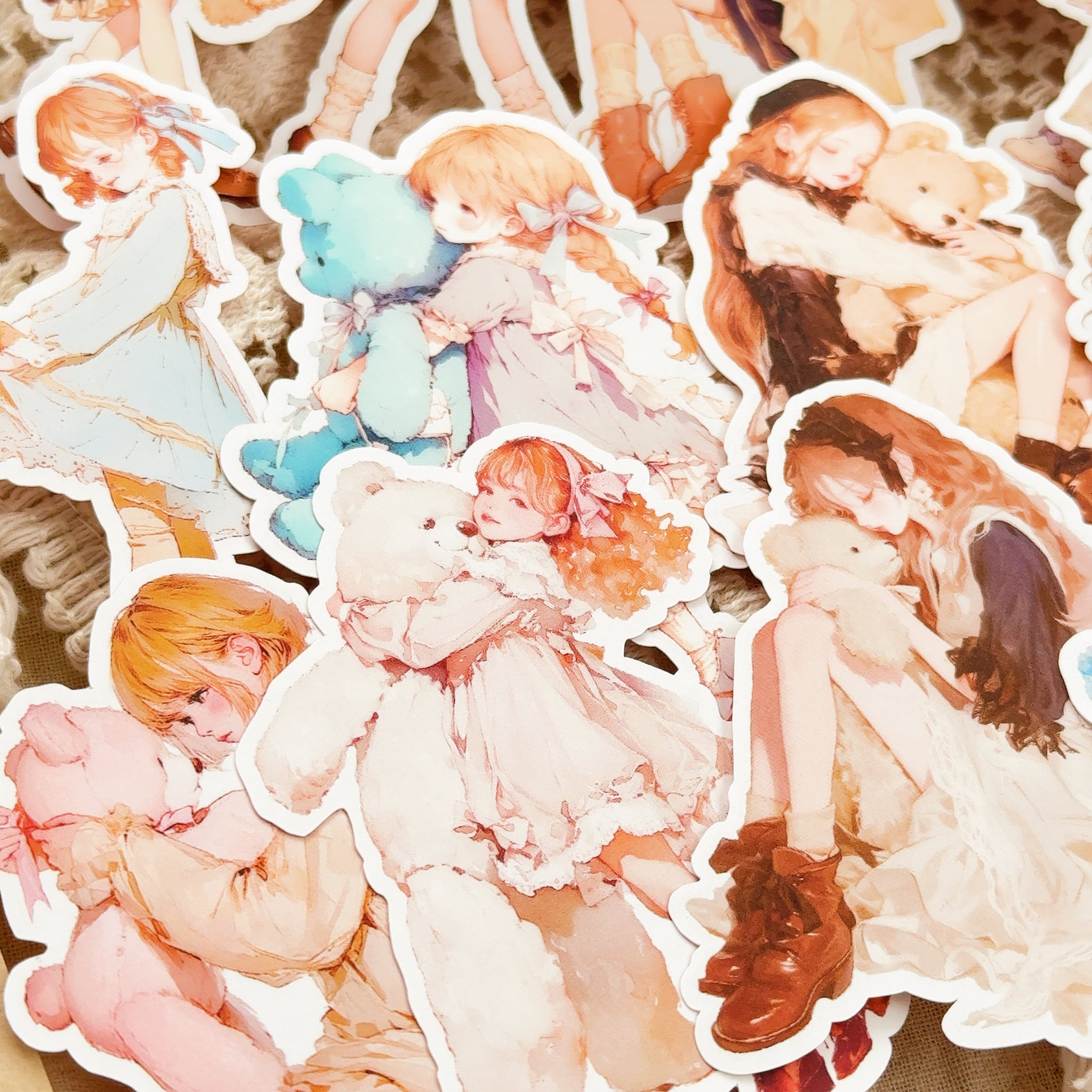 くまを抱いた女の子の、やさしい雰囲気のダイカットメモです。