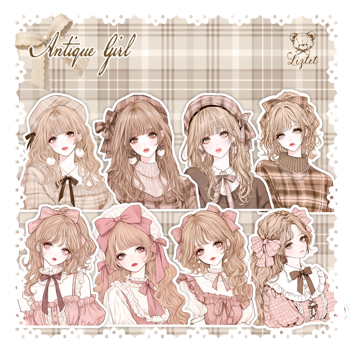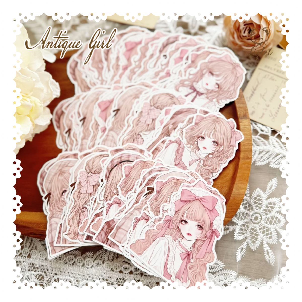 アンティークな雰囲気の女の子たちのダイカットメモをたっぷり詰め込みました。