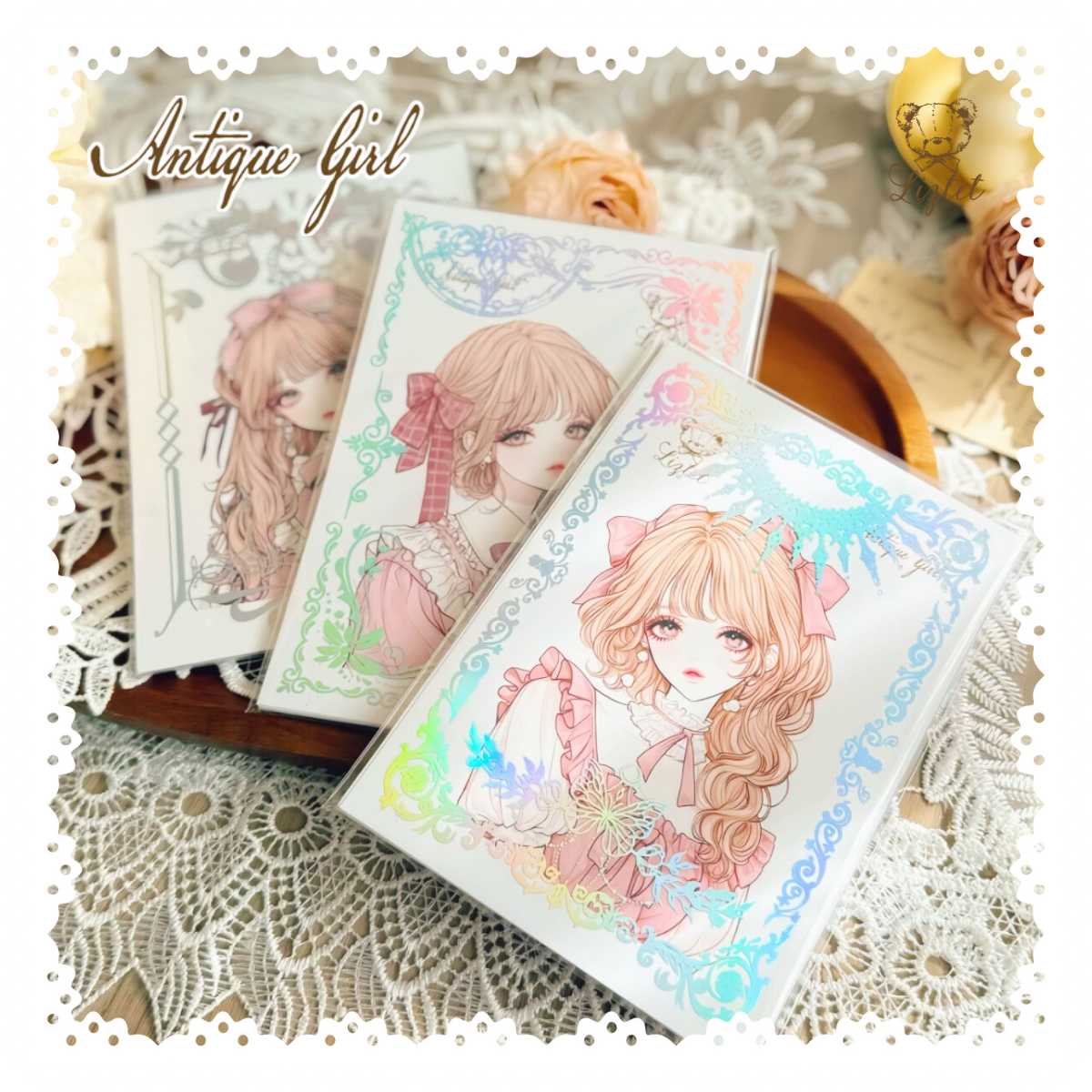 アンティークな雰囲気の女の子を集めたシートシールです。