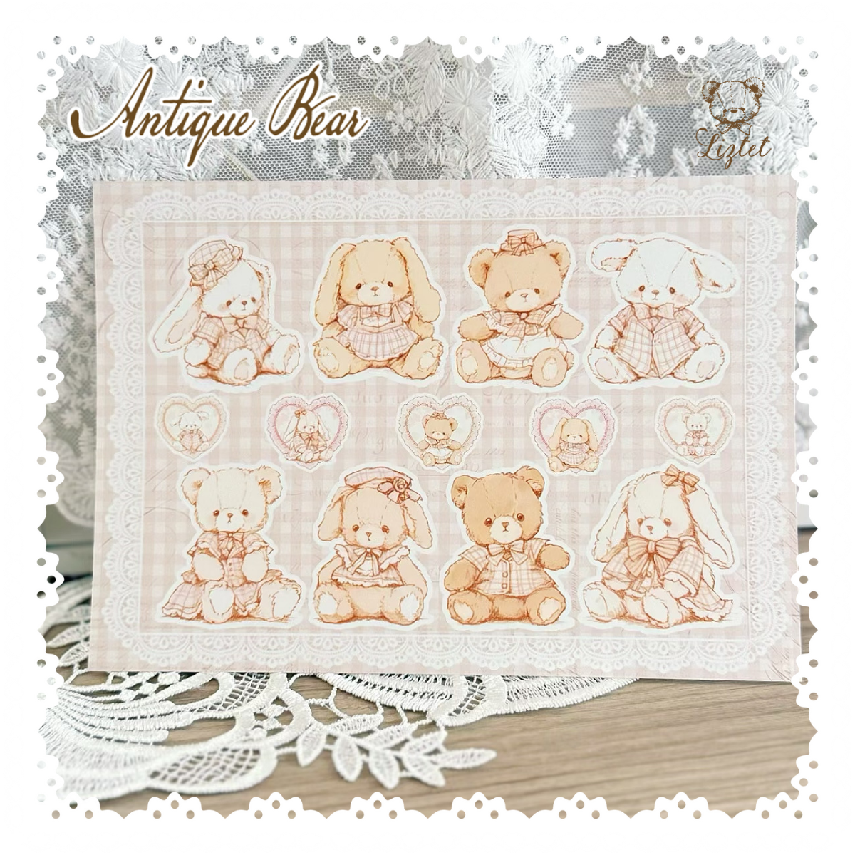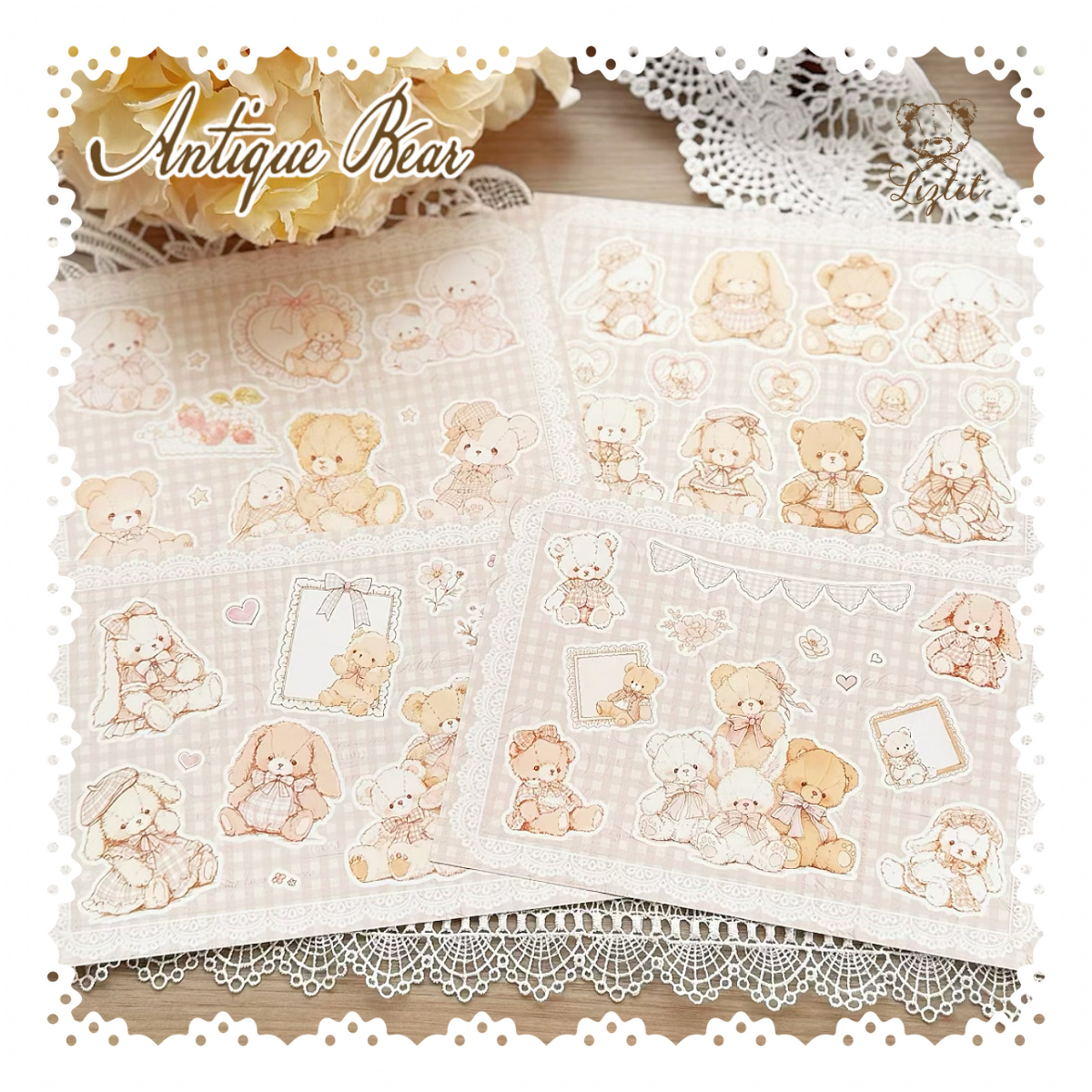 【Antique Bear】A5コラージュペーパー(全4柄)