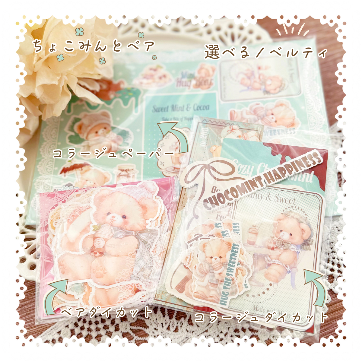 ベアダイカット・コラージュダイカット・コラージュペーパー・ランダムアソートのどれか、お好きなノベルティをお選びいただけます。